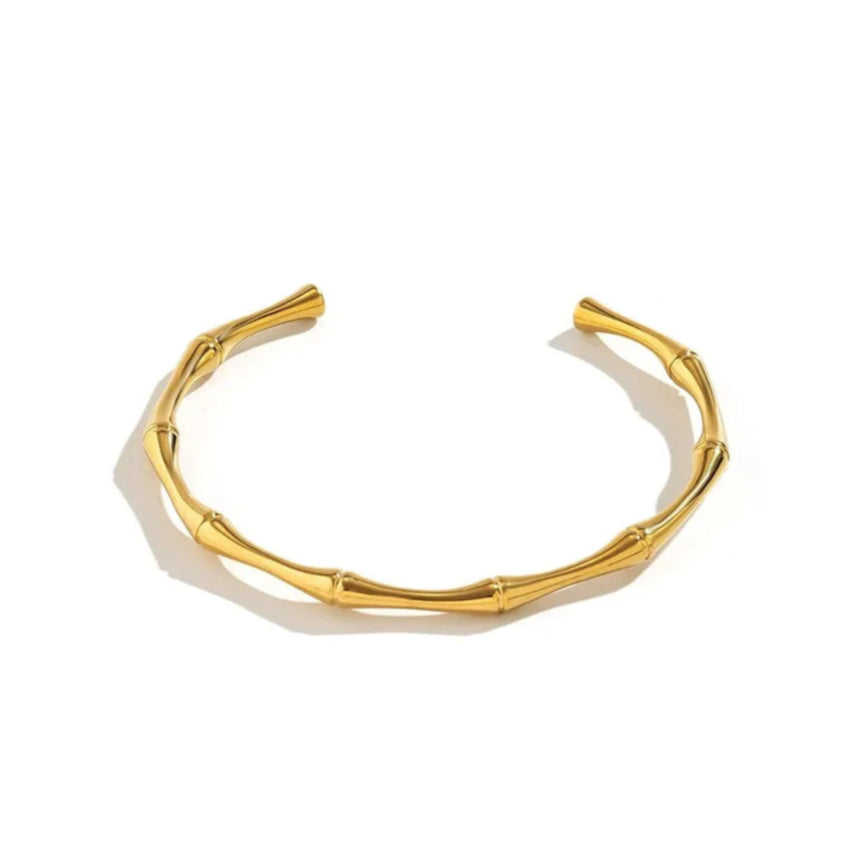 De combinatie van strakke lijnen en het organische bamboe-detail maakt ze tijdloos en geschikt voor elke gelegenheid. Voeg een vleugje natuurlijke schoonheid toe aan uw sieradencollectie met deze bijzondere manchetarmbanden.
